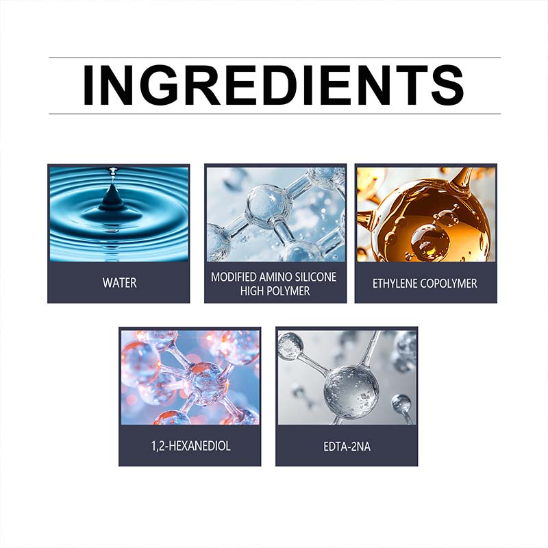 Material: Water, Modified Amino Silicone High Polymer, Ethylene Copolymer, 1,2-Hexanediol, EDTA-2Na